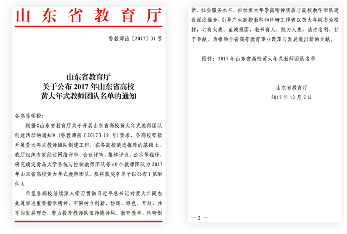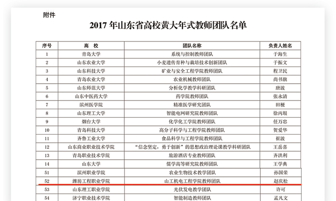 山东省高校黄大年式教师团队-2017年山东省高校黄大年式教师团队:山工机电工程学院教师团队