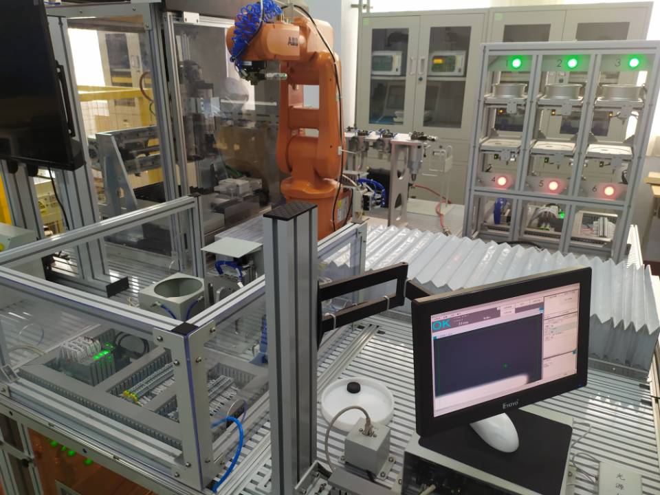 本次展示的是模拟轮毂生产工艺流程的工作站操作,本工作站以工业机器人为核心,实现轮毂的不同生产工艺加工过程,包括轮毂出入仓库、工业相机识别轮毂状态、数控加工轮毂车标、轮毂打磨处理、产品分拣等环节,贴近真实的生产加工过程。整个加工环节无人干预,并可远端实时监控工艺流程,真正实现了智能制造。