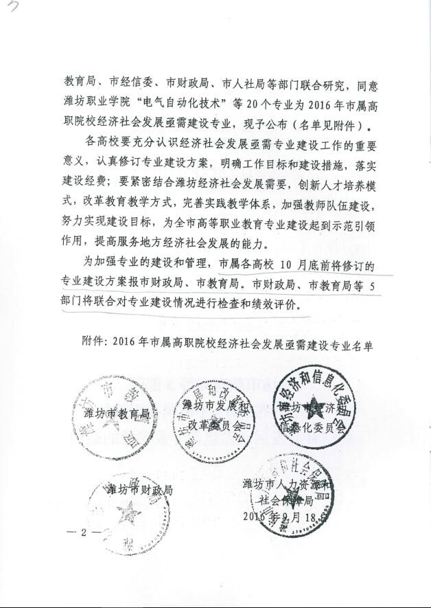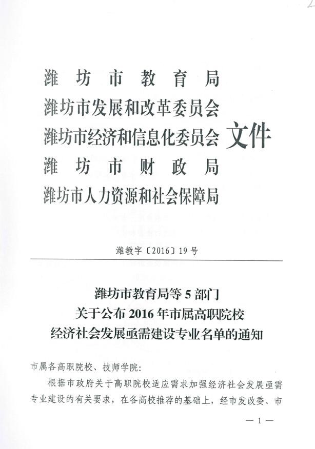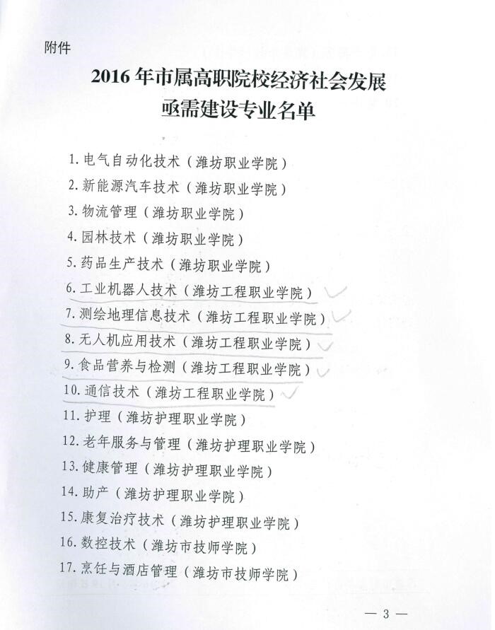 潍坊市经济社会发展亟需建设专业——工业机器人技术、无人机应用技术