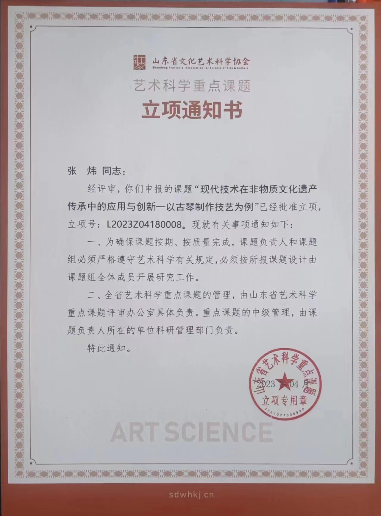 我院教师立项山东省艺术科学重点课题一项