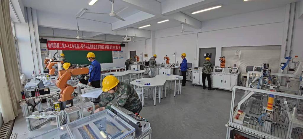 主要功能:本实训室按照教育部工业机器人操作与运维“1+X”职业技能等级证书标准进行建设,能够完成工业机器人操作与运维“1+X” 初、中、高级职业技能等级证书的培训和考核工作。